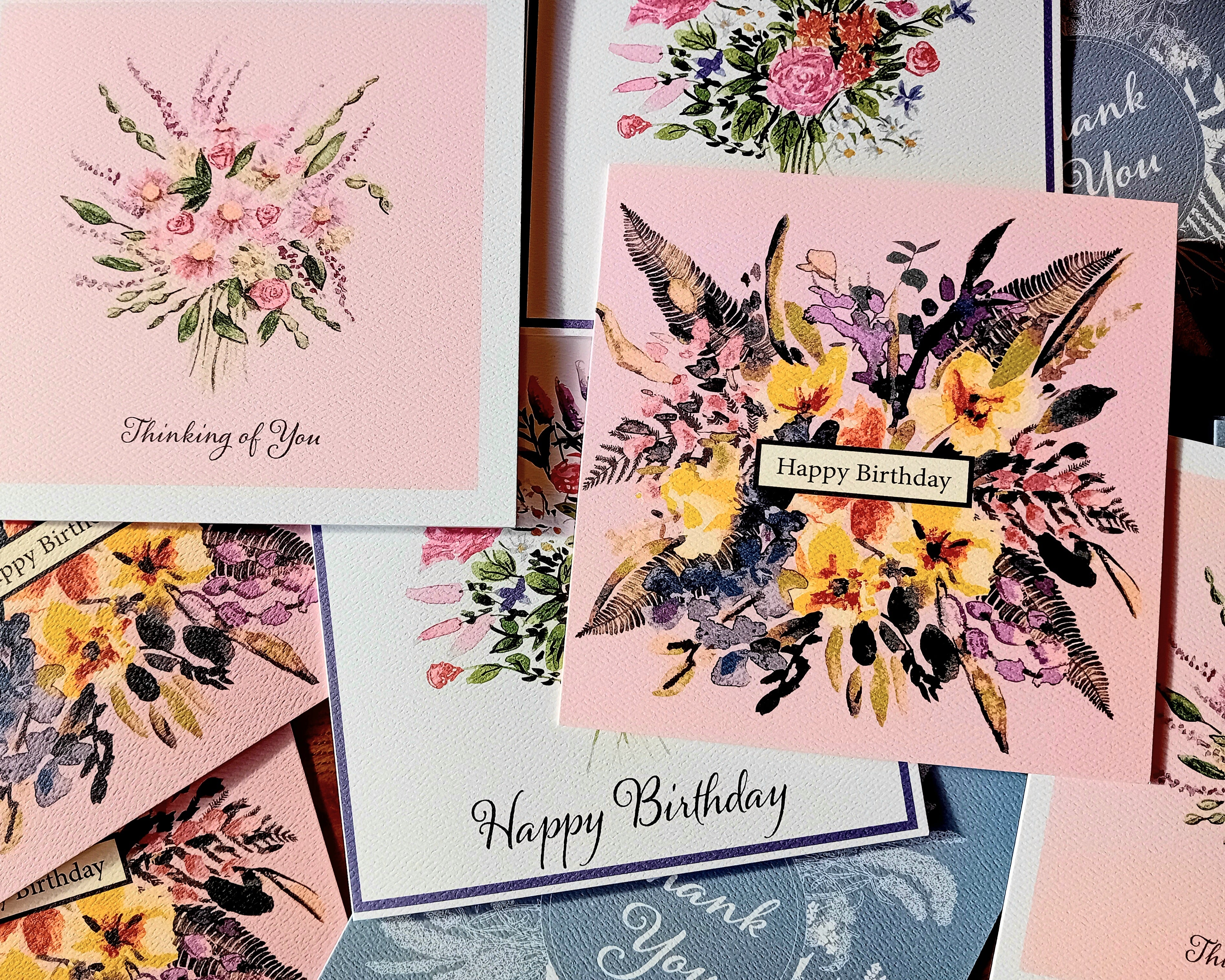 Pick Four of your favourite floral greeting cards and One is on us! Discount will automatically be applied at checkout.