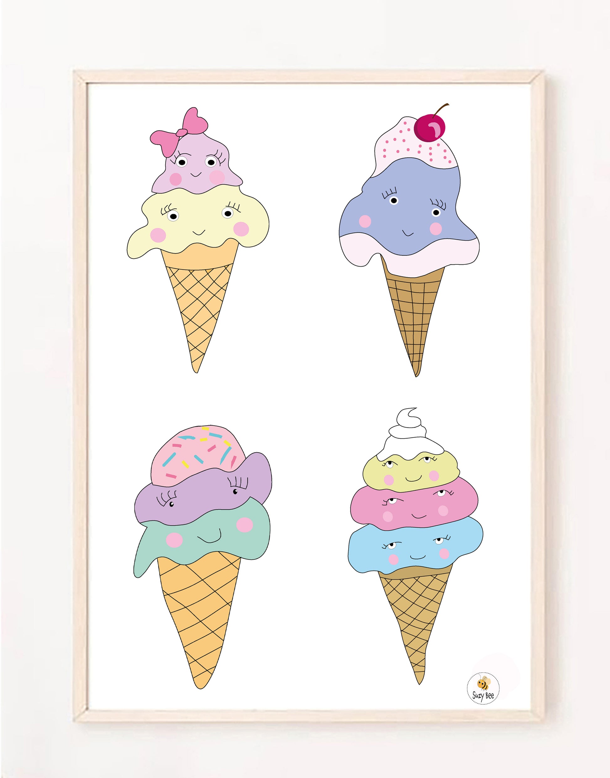 Decorate a room, nursery or playroom with this super cute smiley Ice cream print. Add more prints from the Super Sweet Collection to create a fun theme.