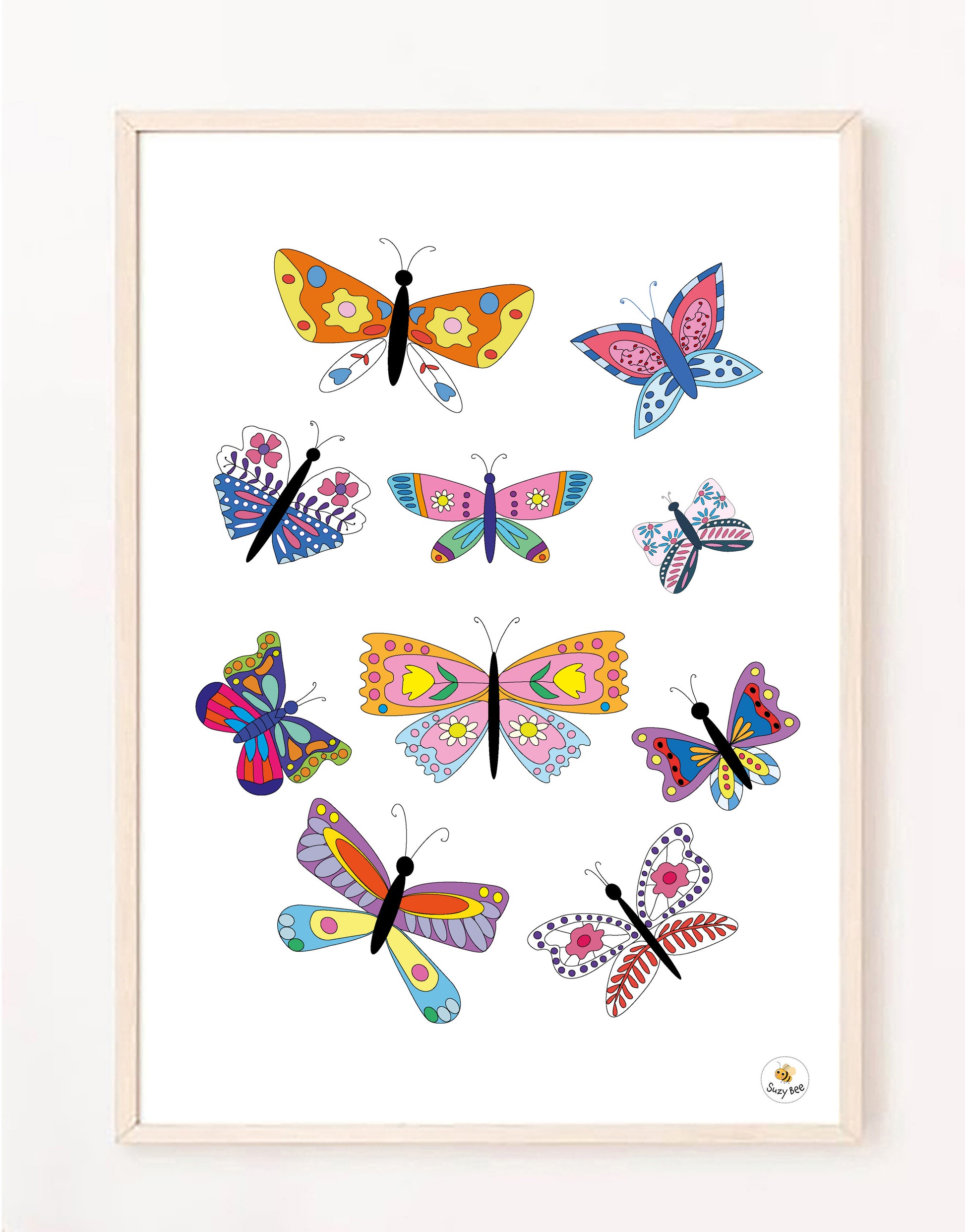 Decorate your child's room with these really pretty butterflies from my butterfly collection. Decorate with one set or add more for a super cute theme. Collect butterfly patterned products from the collection to complete your room decor. All prints feature my illustrations or hand drawn patterns