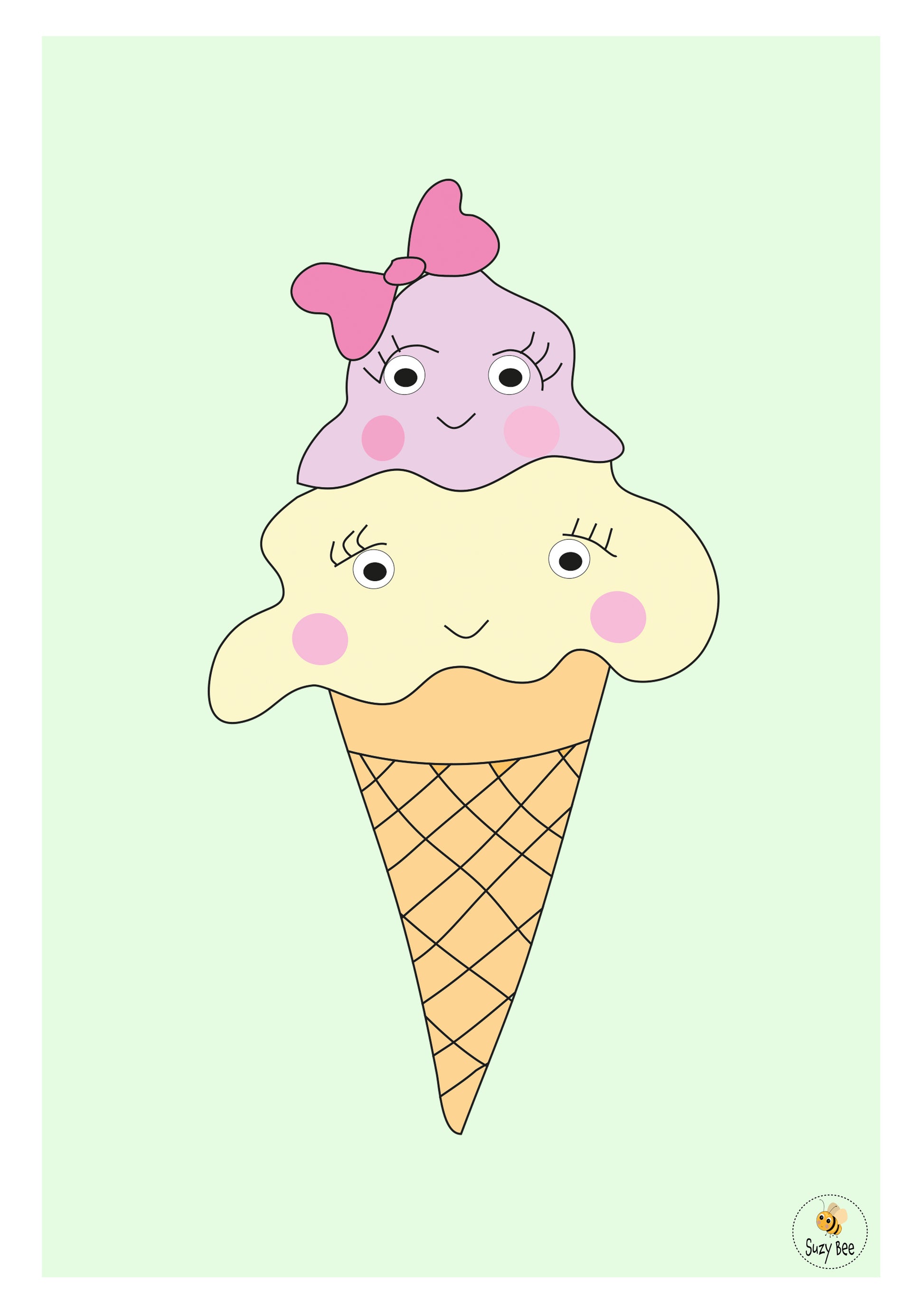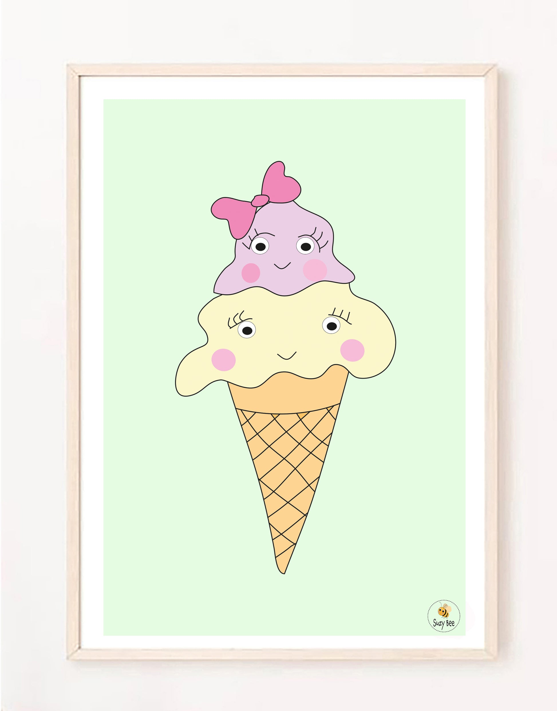 Decorate a room, nursery or playroom with this super cute smiley Ice cream print. Add more prints from the Super Sweet Collection to create a fun theme.