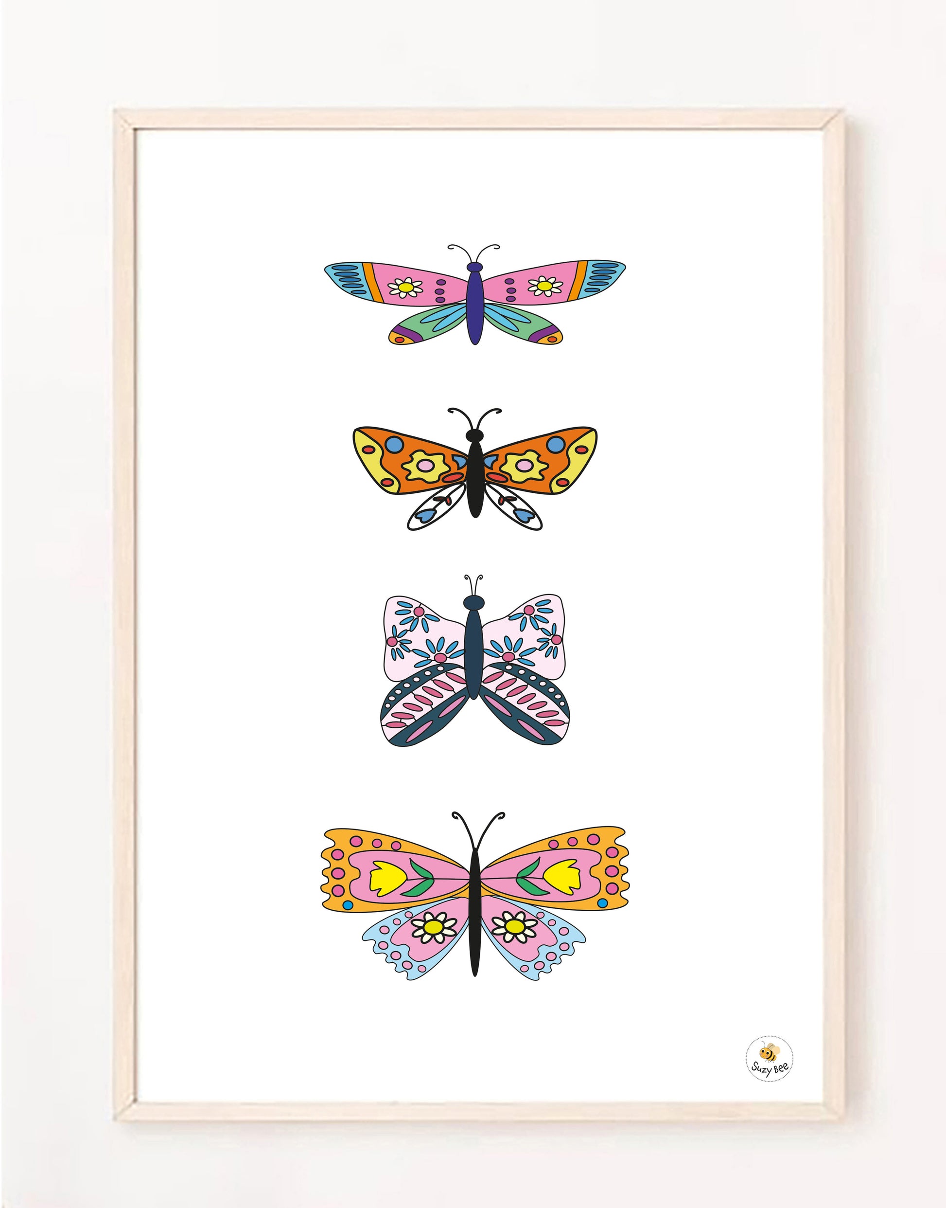 Decorate your child's room with these really pretty butterflies from my butterfly collection. Decorate with one set or add more for a super cute theme. Collect butterfly patterned products from the collection to complete your room decor. All prints feature my illustrations or hand drawn patterns