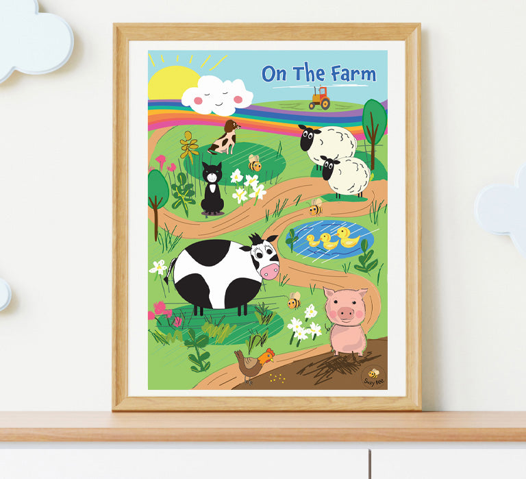 Create a fun farm theme for your child's bedroom with our super cute "On the Farm" collection. Choose your favourite animals and add accessories from a range of products. All prints feature my illustrations or hand drawn patterns