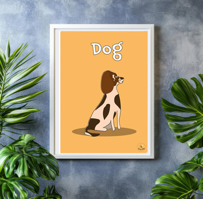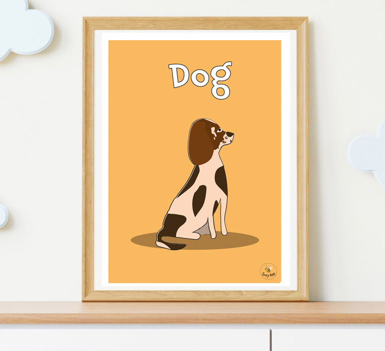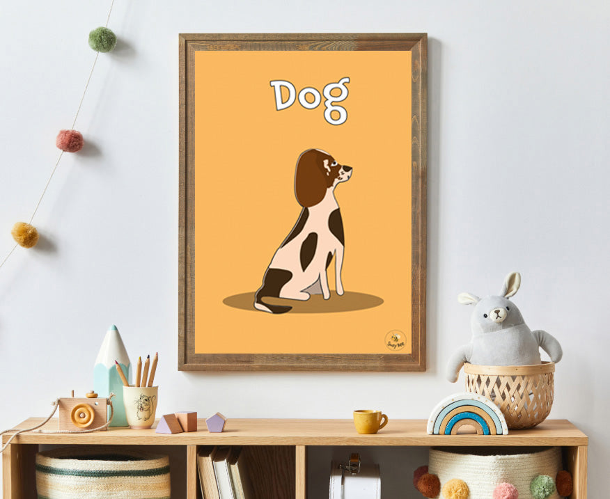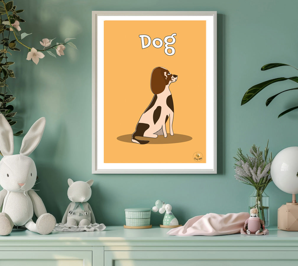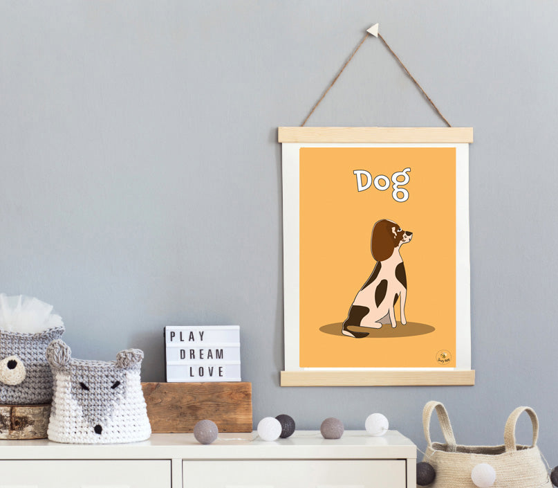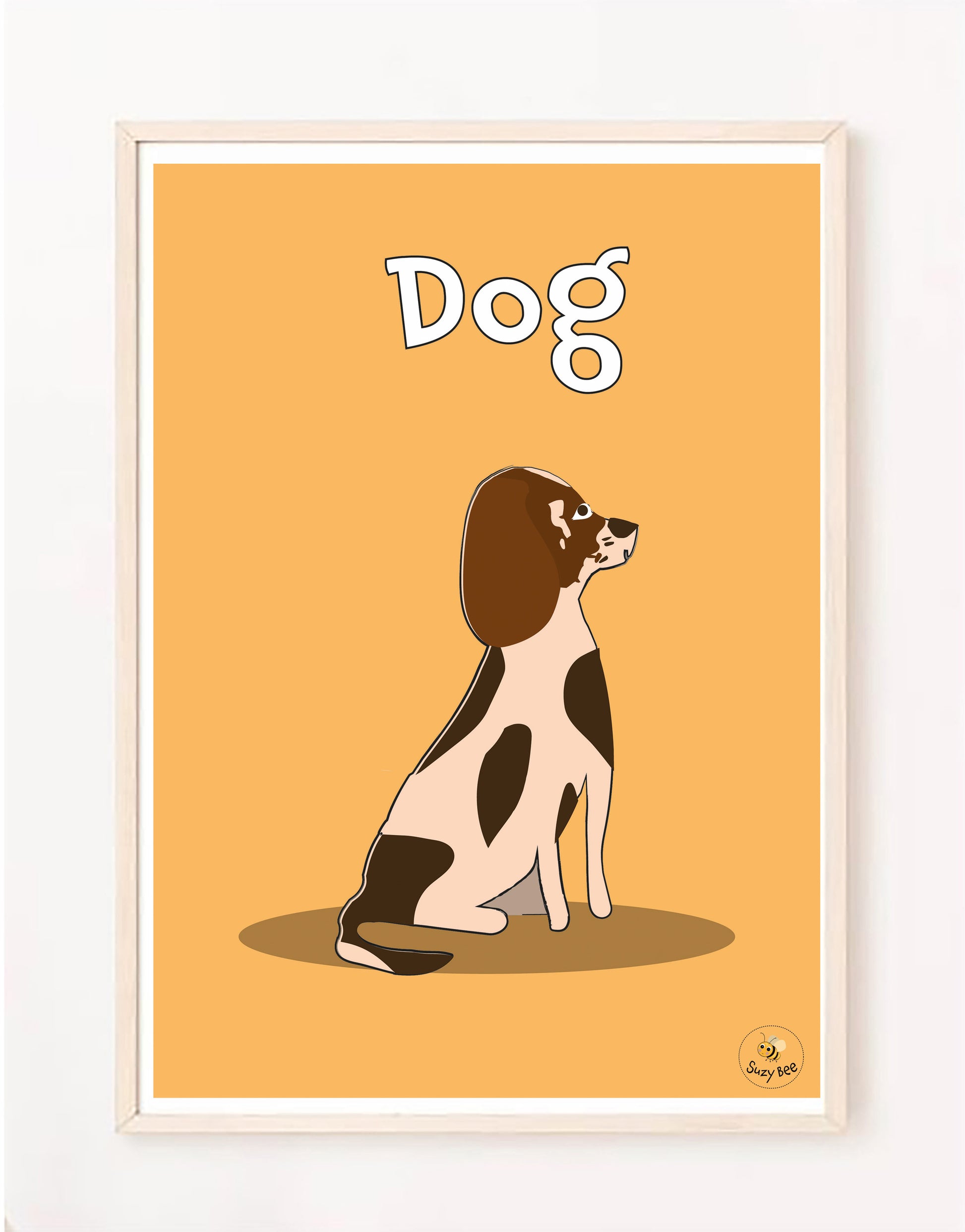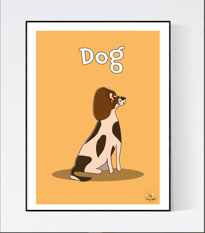 Create a fun theme for your child's bedroom with our super cute Dog print based on a springer spaniel from our "On the Farm" collection. Choose your favourite animals and add accessories from a range of products. All prints feature my illustrations or hand drawn patterns