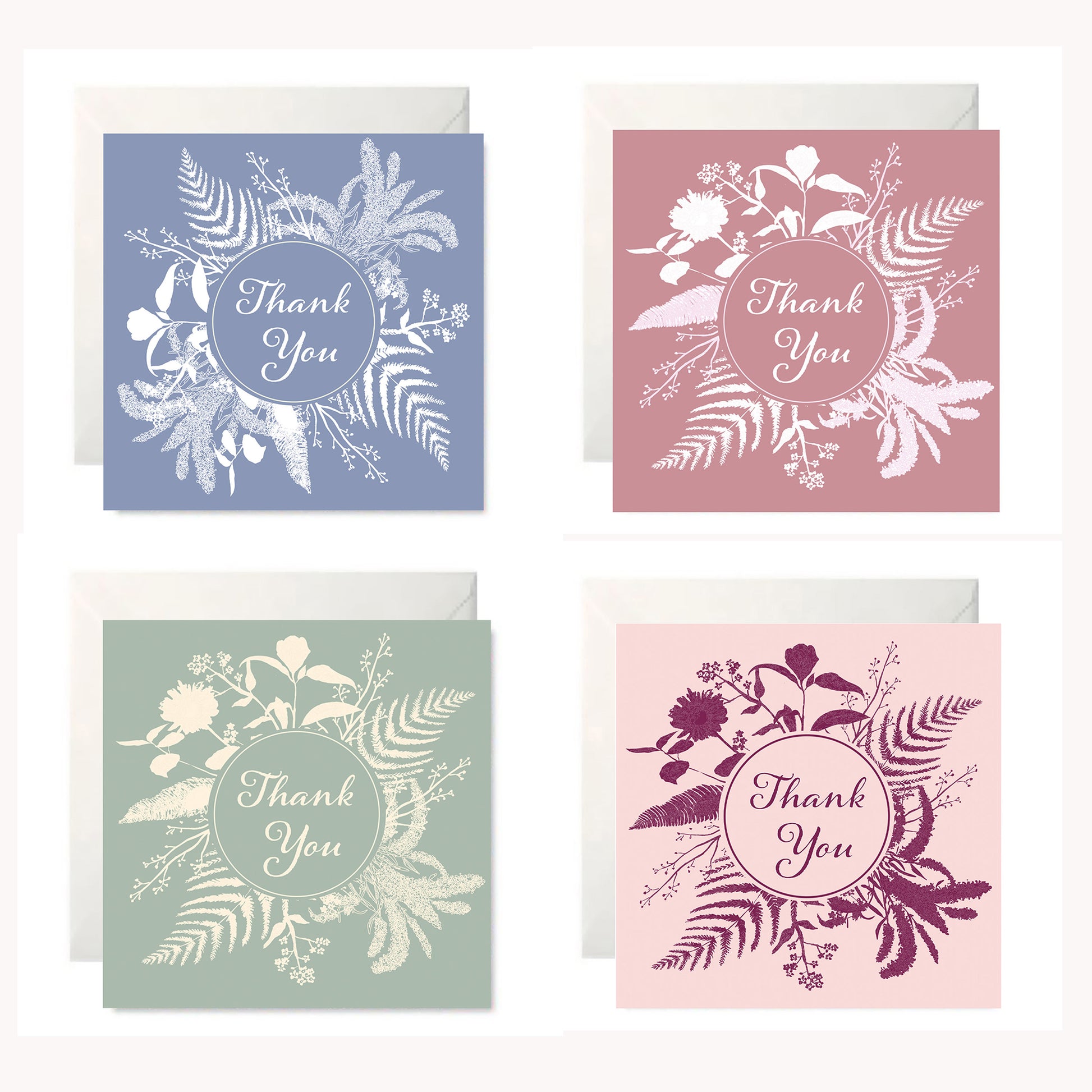 A beautiful collection of Thank You cards in a range of four colours. Cards that you can reach to at any moment to offer thanks to a friend or family member.It marks a moment and makes it special.